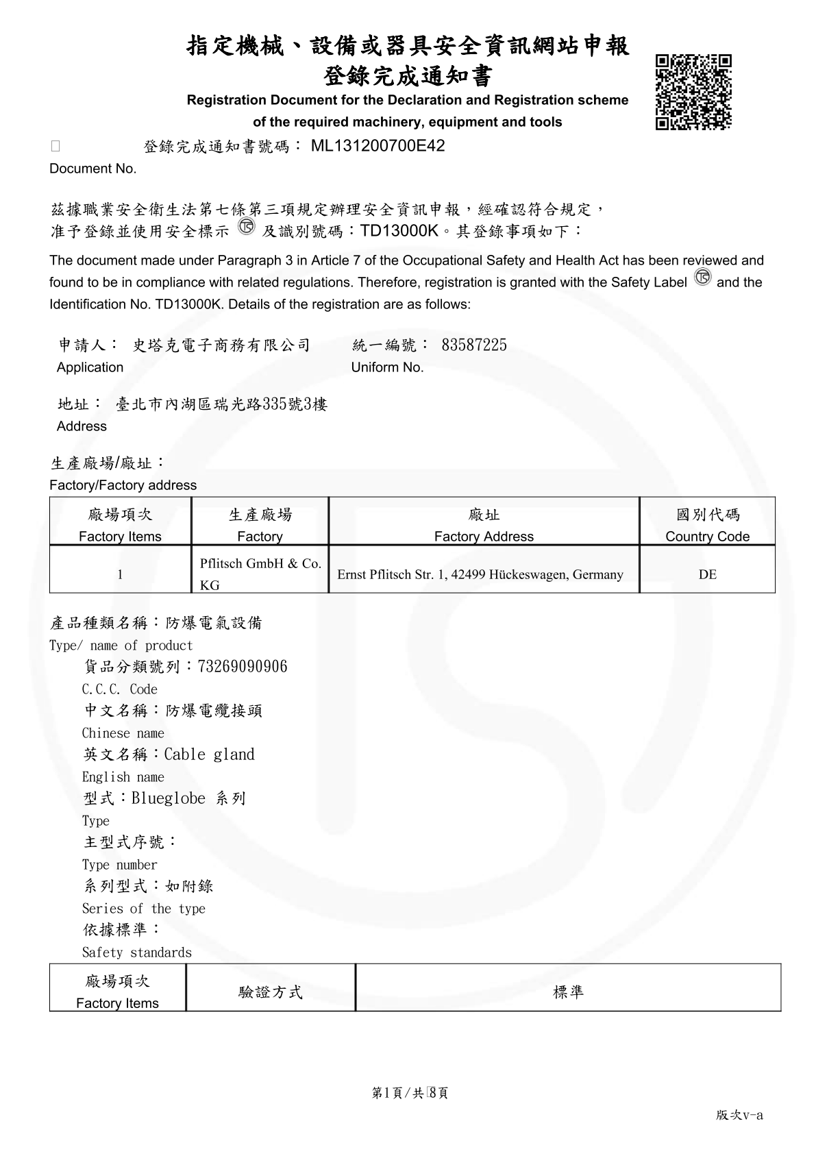 - Cable Gland (電纜固定接頭): 包含可多孔進線的UNI Dicht系列,寬線徑的Blueglobe系列以及通過Ex e(安全增防爆)、Ex d(耐壓防爆)等級的防爆電纜接頭,適合於食品飲料業使用的Hygienic Design電纜接頭,可支援到IP69防護等級以及抗EMC干擾的電纜接頭。