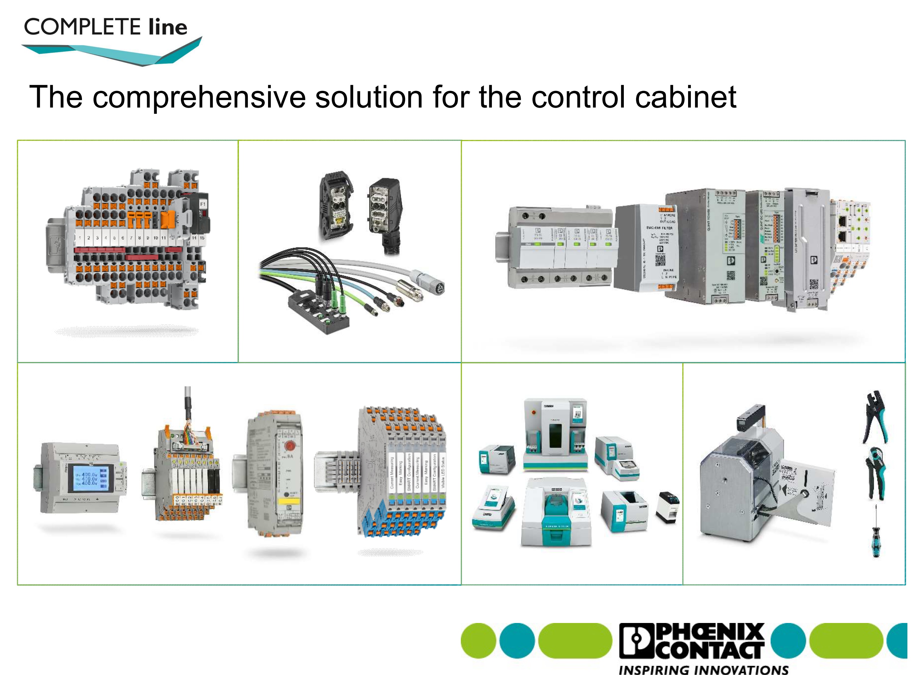 - DC 電源供應器、DC/DC轉換器及DC UPS: 應用於控制盤內的DC供電,依照產品規格的高低,依次為QUINT系列、TRIO系列、UNO系列、ESSENTIAL系列以及STEP系列,並有冗餘(Redundant)功能以及EX防爆功能可供選擇。
